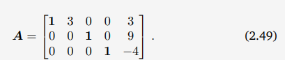 reduced row-echelon form은 더욱 더 쉽게 해를 구할 수 있게 해주는데, 기존의 row-echelon form의 모든 피벗컬럼들에 대해서 피벗을 제외한 해당 열의 다른 원소가 모두 0이면 조건을 만족한다.