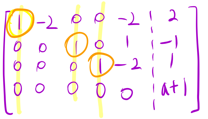 자주색이 칠해진 열들의 선형결합으로 general solution을 구할 수 있다.