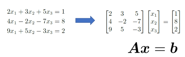 앞장에서 햄버거 문제를 통해 잠깐 말했듯 우리는 이미 $a_{ij} \in \mathbb{$}, b_{ij} \in \mathbb{R}$ 상수를 이미 알고 있고, 우리가 몰라서 알고 싶은 것은 $x_{i}$ 들이다.